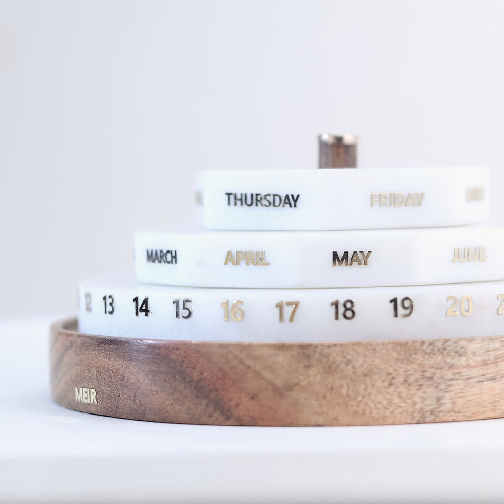 Rooted in the philosophy of balance and unity, the Eternal Marble Calendar celebrates the interplay of materials. The natural textures of marble and wood meet the refined elegance of gold, creating a harmonious design that resonates with sophistication and grace.